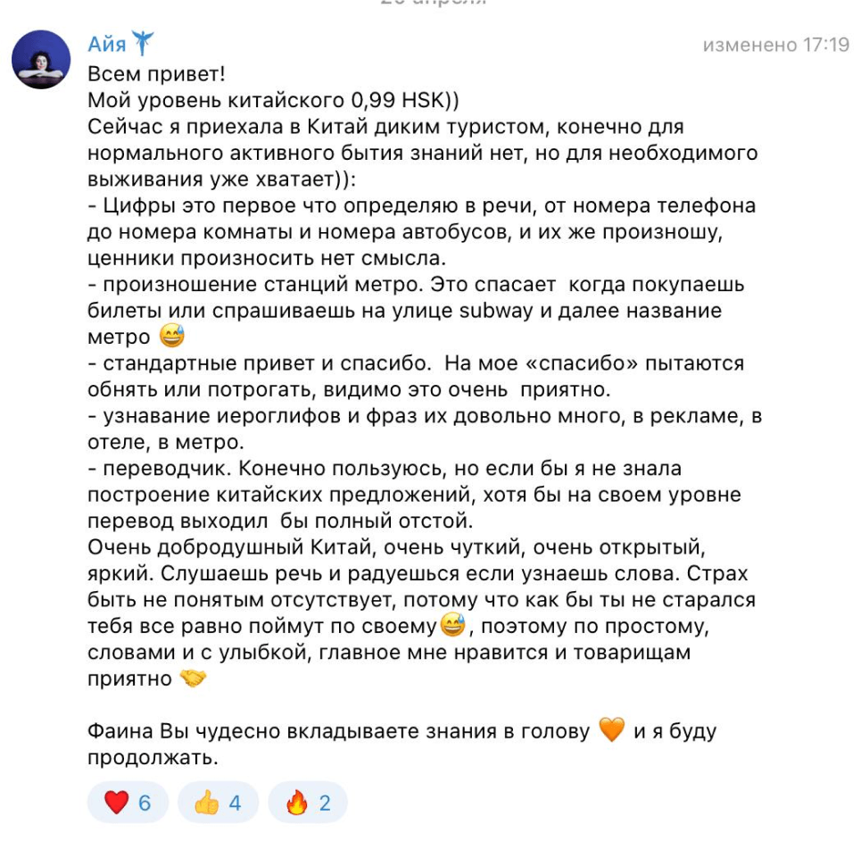 где вы проживете настоящий опыт общения с китайцем под чутким надзором носителя языка в безопасной среде